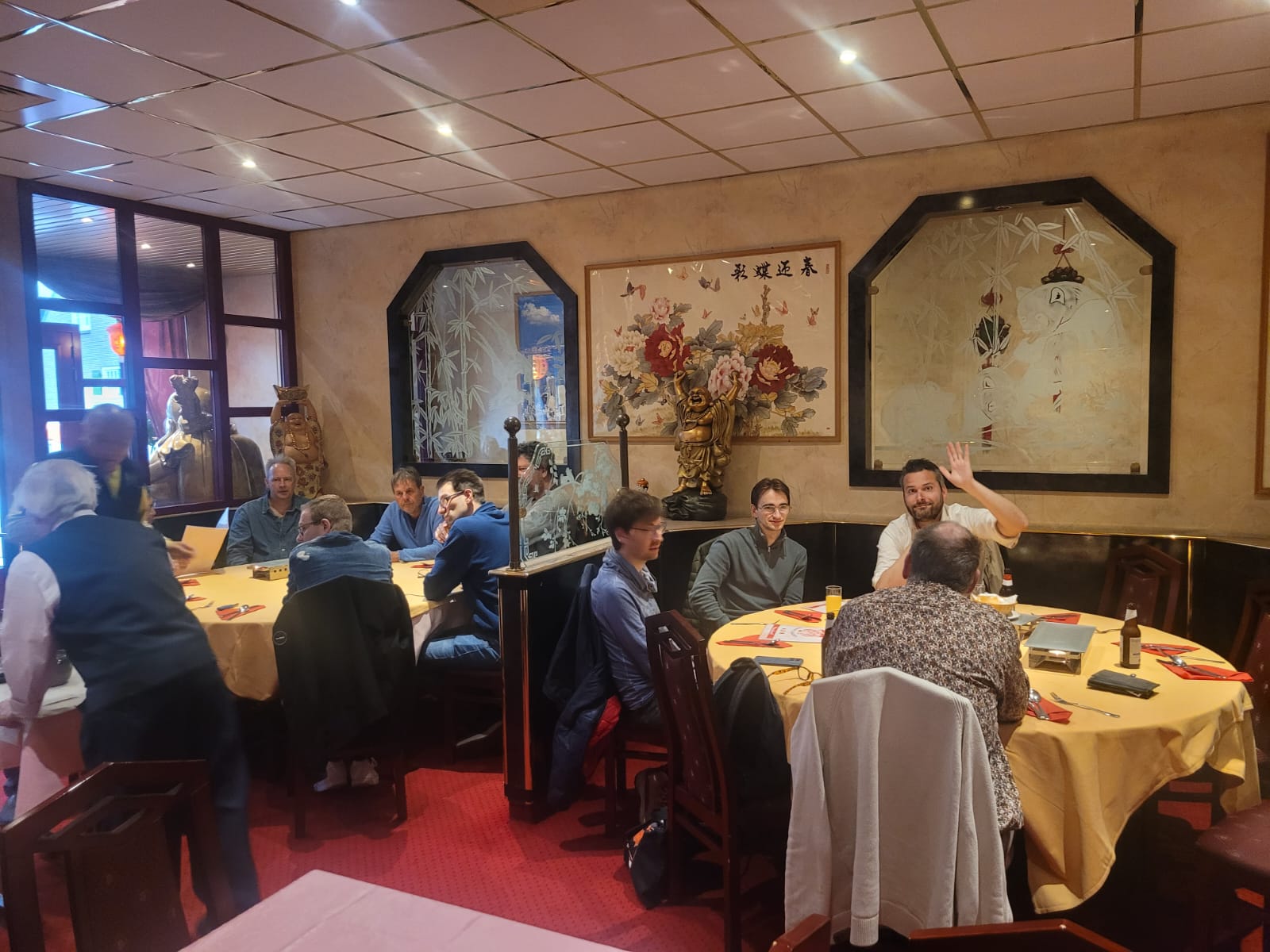 De tactiek die we hadden bedacht, werkte een uur of 2 goed, maar werd daarna bruut verstoord door Johan. Hij was prima uit de opening gekomen en kreeg al vroeg een remise-aanbod van Ivo Kok. Na overleg met de teamleider nam hij dat aan, waardoor het plan om Johan op bord 1 te offeren niet helemaal door ging. ½/½. Dit resultaat had ook een nadeel, namelijk dat Johan al vroeg aan de bar zat. Toen het uren later tijd was om naar het gereserveerde restaurant te gaan, moest Johan afhaken. Hij fietste liever in een rechte streep naar huis. Hoewel gezien de kleine oogjes van Johan op dat moment, vermoed ik dat het niet zo’n heel rechte streep geweest zal zijn..